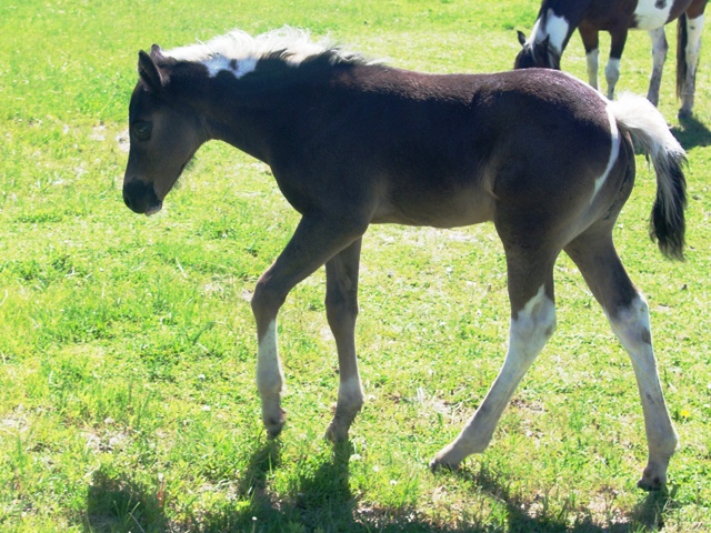 APHA Black Tobiano Filly May 3, 2011 Homozygous for Tobiano Black Tobiano Filly By A Tru Rolex out of Shots Flying Starlight Sired by A Tru Rolex Multiple World Champion Producer, out of Shots Flying Starlight, daughter of Shots Flying Spark, multiple world champion sire and daughter of Grays Starlight AQHA (foal earnings over $8.2 million). Breeders’ Trust eligible. A great show prospect, homozygous tobiano with a great pedigree.